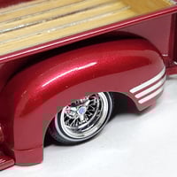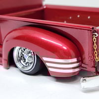 Set of twelve 1:25 scale sargent stripes to fit the fenders of the Ertl 1950 Chevy truck kits. These are chrome die cut water slide decals. You will need to trim to fit the rear section of each stripe. I recommend using a decal softener to form them to the curves of the fenders. Can be applied on top or underneath the clear coat. These were difficult to photograph, but they're about the same quality level as Bare Metal Foil but in decal form. We recommend storing in an airtight bag and a cool and dry environment.