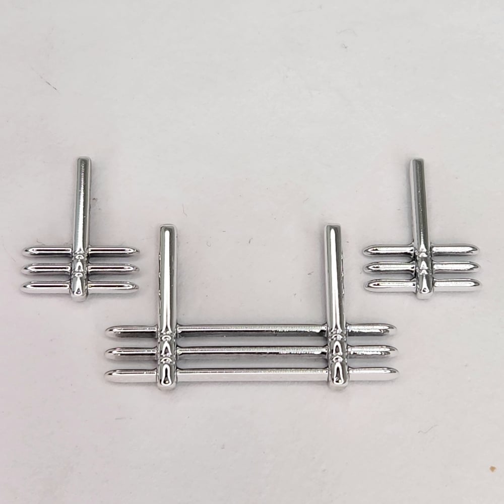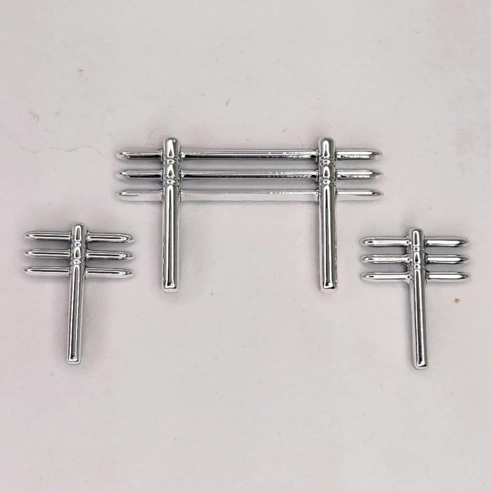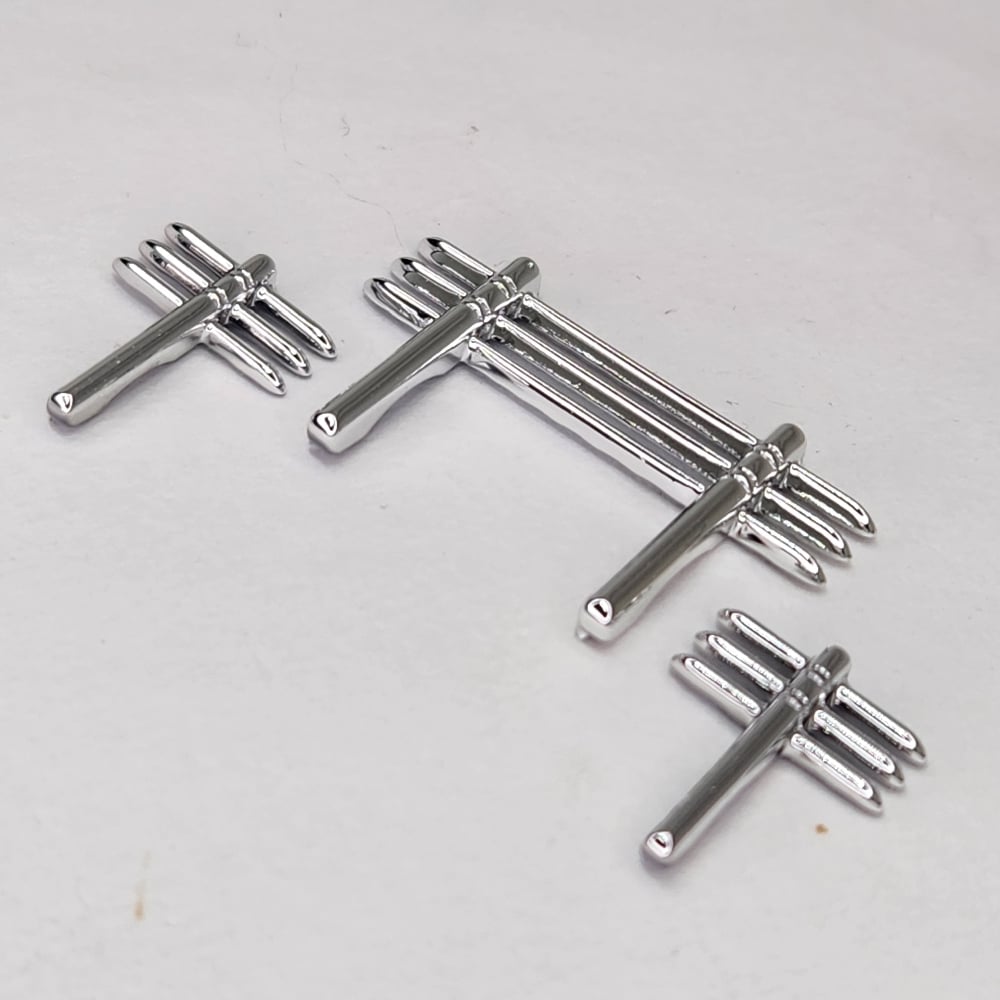 Set of chrome plated grill and bumper guards. You get 1 large grill guard for the front and 2 small guards for the rear bumper. Can also use the small ones on the front off to the sides. These are pretty universal and will look good on anything. Should fit most 1:24 - 1:25 bumpers, but can easily be trimmed to fit if not.